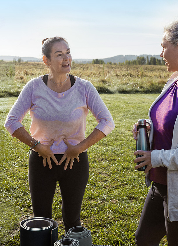 Urinary leakage can happen to any woman at any age, but it’s particularly common around perimenopause and menopause, mainly due to depleting levels of sex hormones2. As our oestrogen levels drop, the muscles that support our pelvic floor can weaken and the lining of the bladder and urethra can become thinner and more sensitive. Women commonly exercise less during the menopause transition and experience increased weight and abdominal fat, which when combined can cause an overall weakening in pelvic floor muscles.